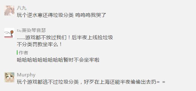 在《逆水寒》垃圾分类上线前玩家也开始纷纷出谋划策,认为可优先考虑对垃圾进行回收再利用,还表示策划应该出一个玩家翻垃圾桶的设定,这样实在饿得不行的时候还可以翻翻垃圾桶找点吃的。还有玩家表示应该线上线下同时联动,号召玩家进行垃圾分类,小编认为这个可以有!